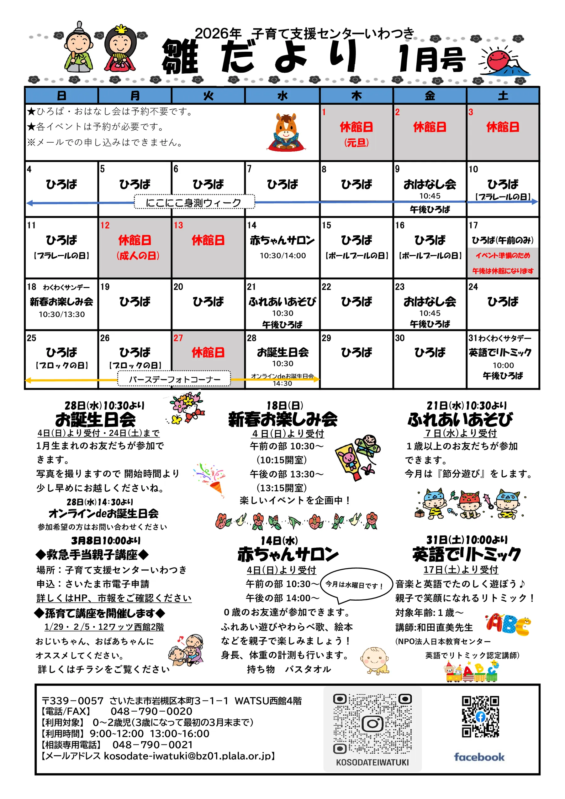 社会福祉法人光翠会は、かわいデイナースリー保育園とは別に、岩槻駅前 WATSU西館 4階にて、子育て支援センターいわつきを運営しております。